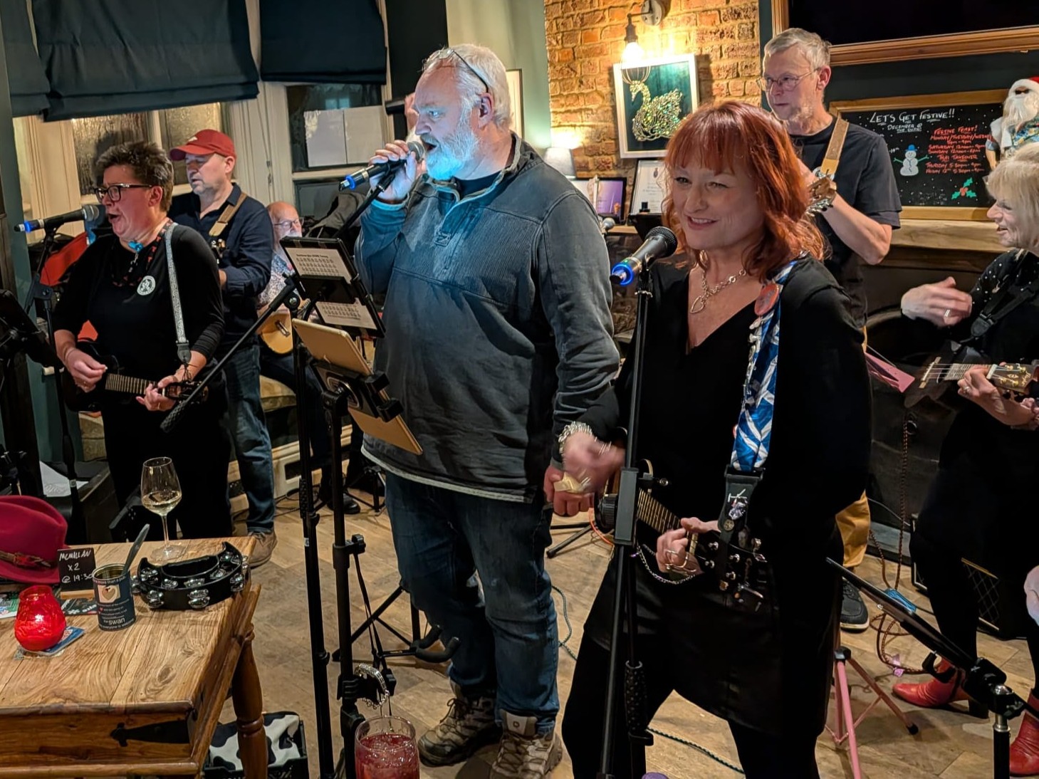 Our favourite gig, Windsor Ukulele Band, were back to entertain the Dark Ale Drinkers in the bar - too cold to be out in the Courtyard now! With some new songs on their playlist, a great time was had by all in such intimate surroundings - thank you for a great night guys and gals!
