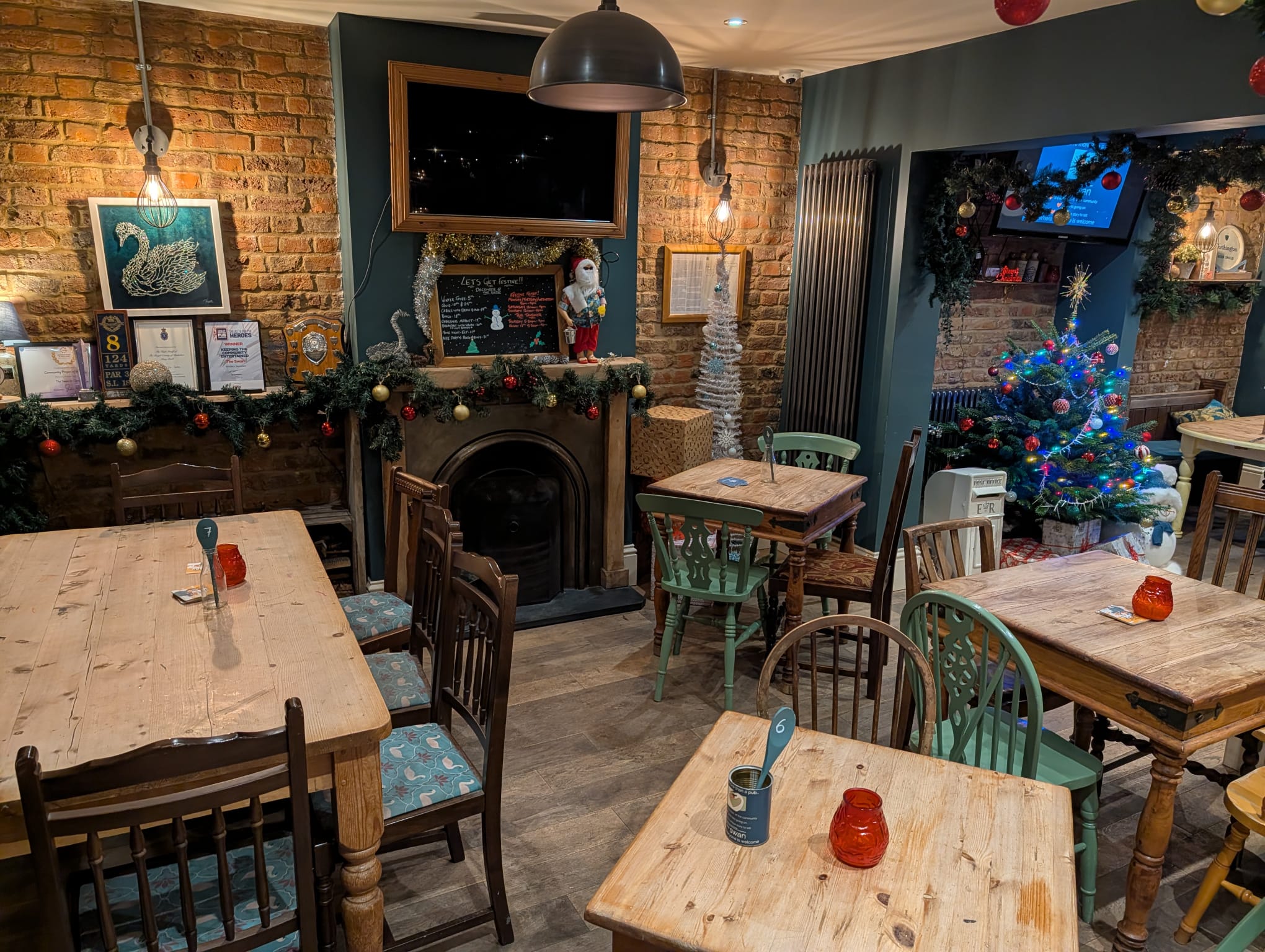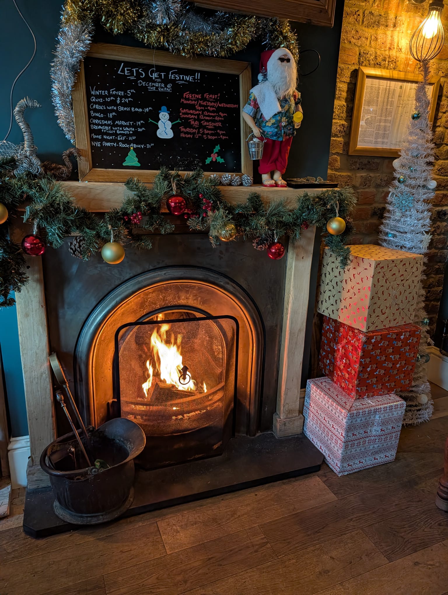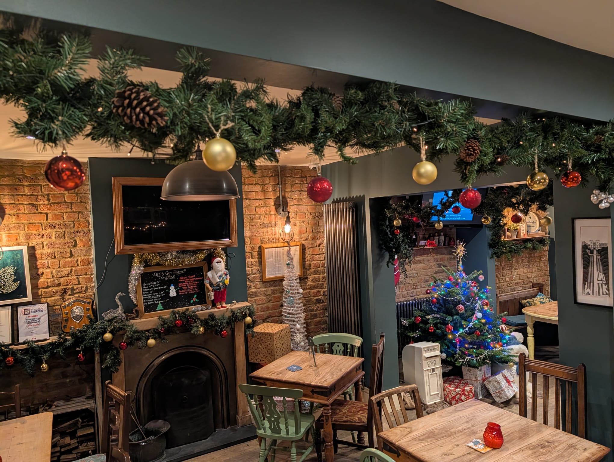Santa's Elves were in the pub overnight to decorate the place. And what a job they have done! Thanks to the elves: Micky, Lee, Dave, Same and Sean. The place is looking really Christmassy now. Santa's post box is ready to receive letters from the little ones too.