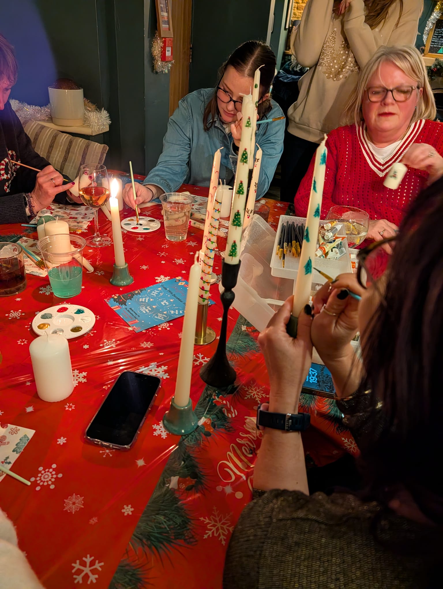Our lovely Steph ran the first of her Christmas Candle Painting workshops – and what a fantastic night was had by all, getting creative whilst enjoying a drink or two and a mince pie!